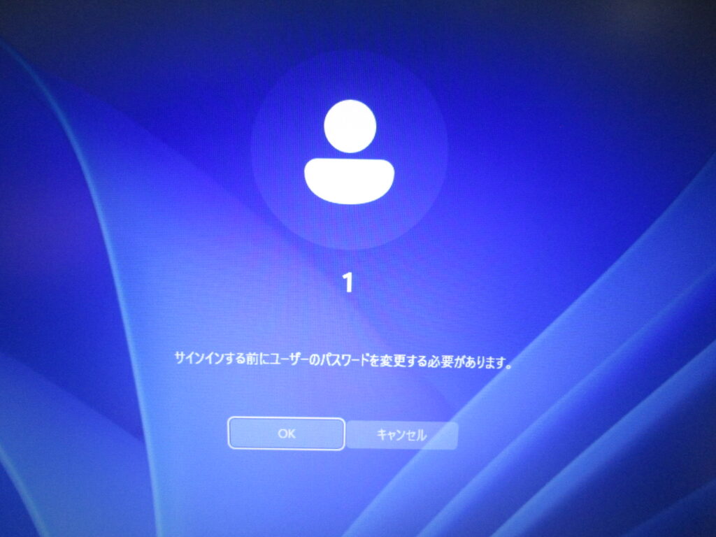 最新バージョンのWindows11では、パスワード未設定ですとセキュリティ向上のため下のパスワード変更を促す画面が表示されます。