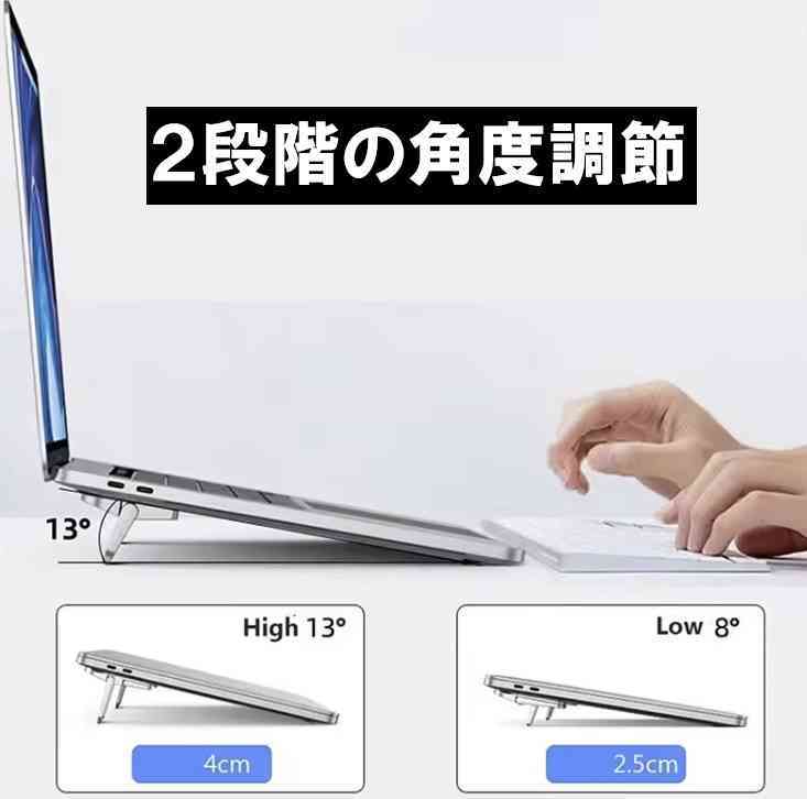 ノートパソコンスタンド 角度2段階調節 軽量堅固 シルバー <新品> [93159]