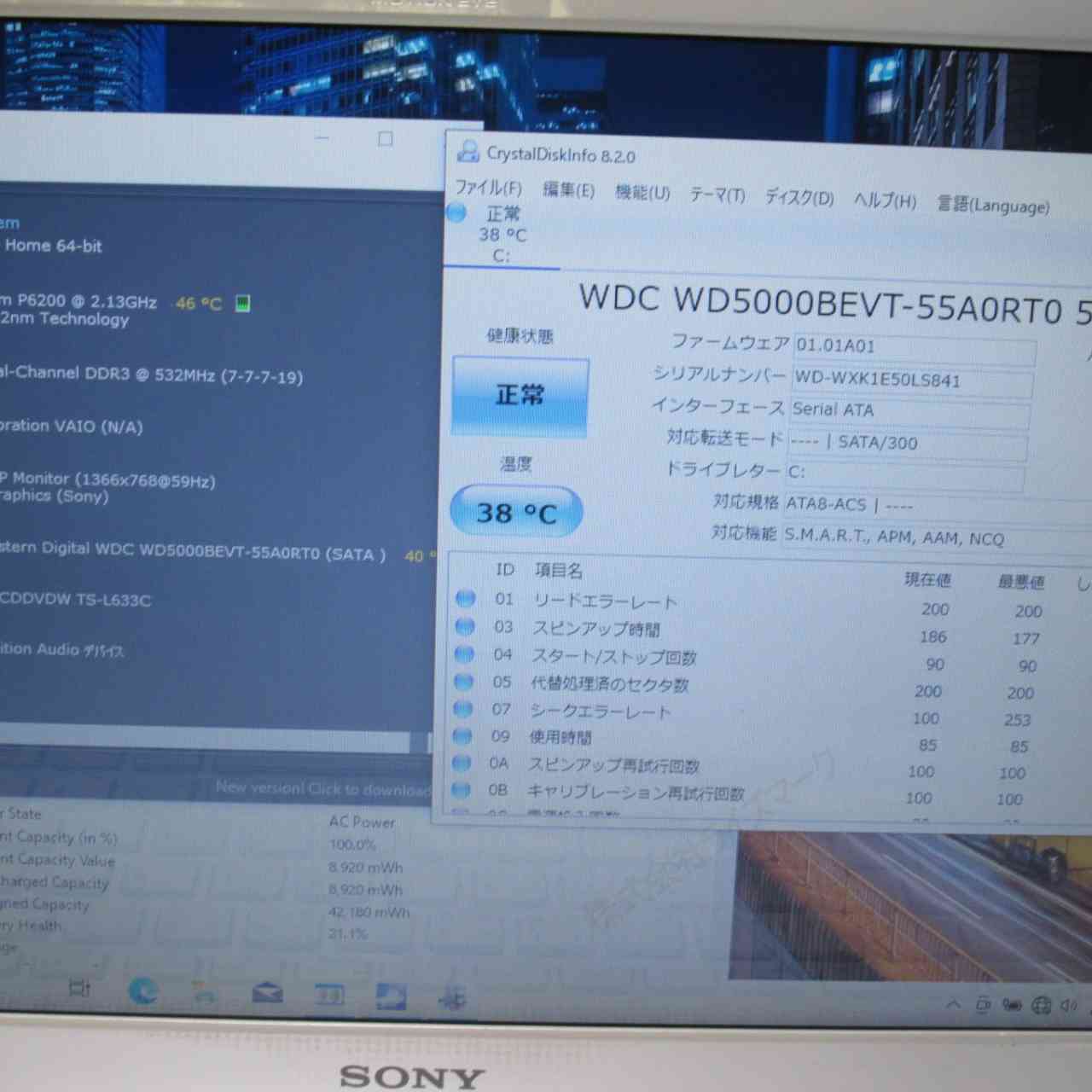 | バッテリー状態 | 新品時と比較して 21% の性能。 (BatteryInfoViewで表示された参考値であり実際の容量・充電可否は保証対象外) |