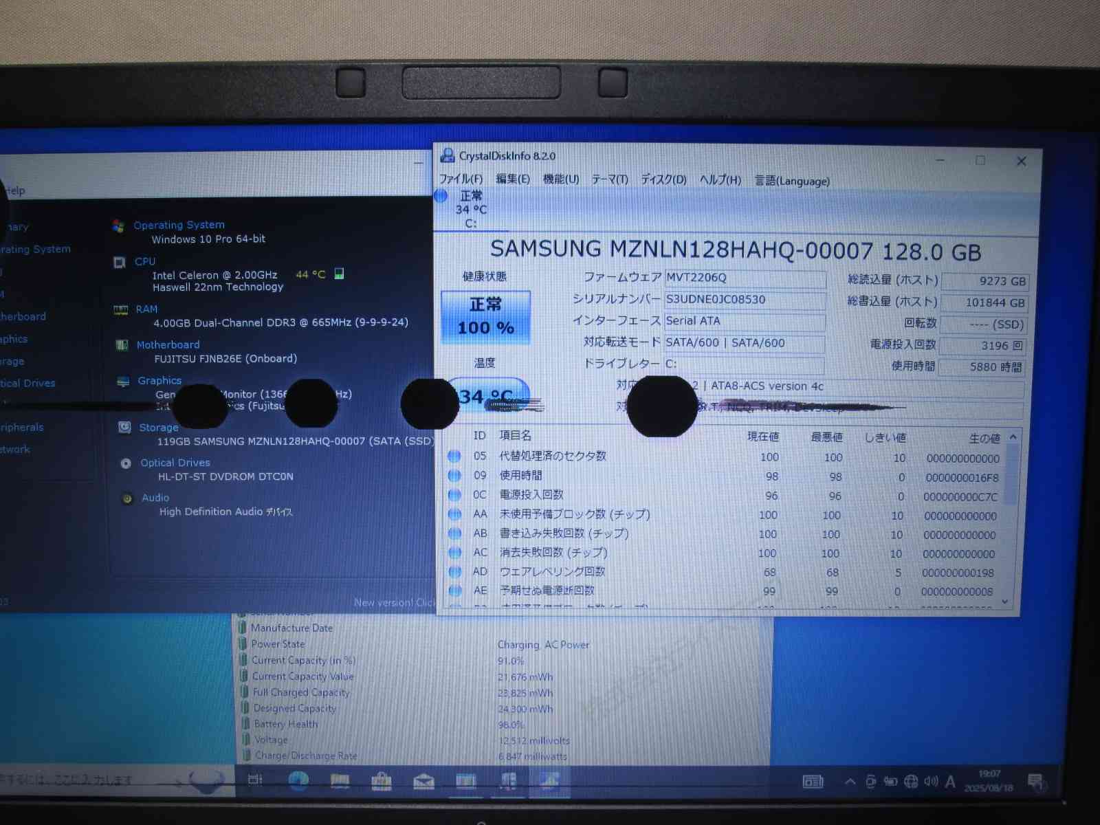 | バッテリー状態 | 新品時と比較して 98% の性能。 (BatteryInfoViewで表示された参考値であり実際の容量・充電可否は保証対象外) |