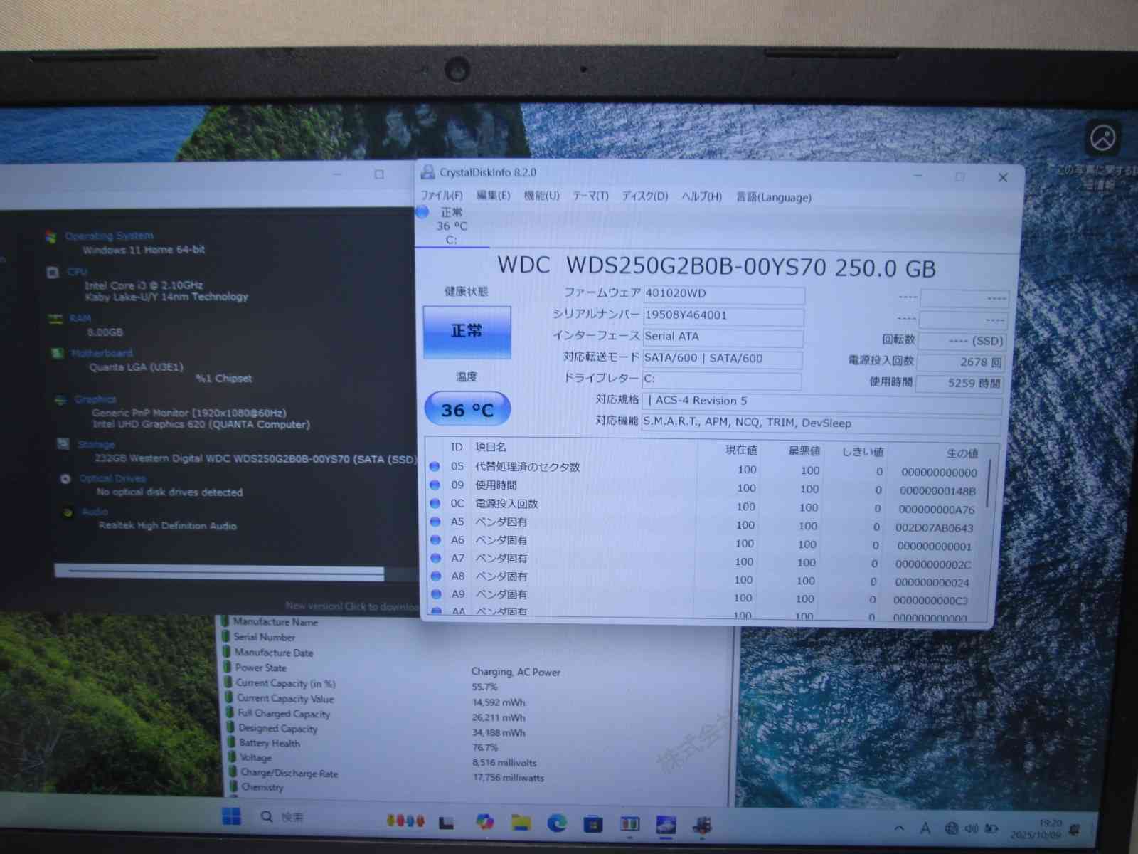 | バッテリー状態 | 新品時と比較して 76% の性能。 (BatteryInfoViewで表示された参考値であり実際の容量・充電可否は保証対象外) |