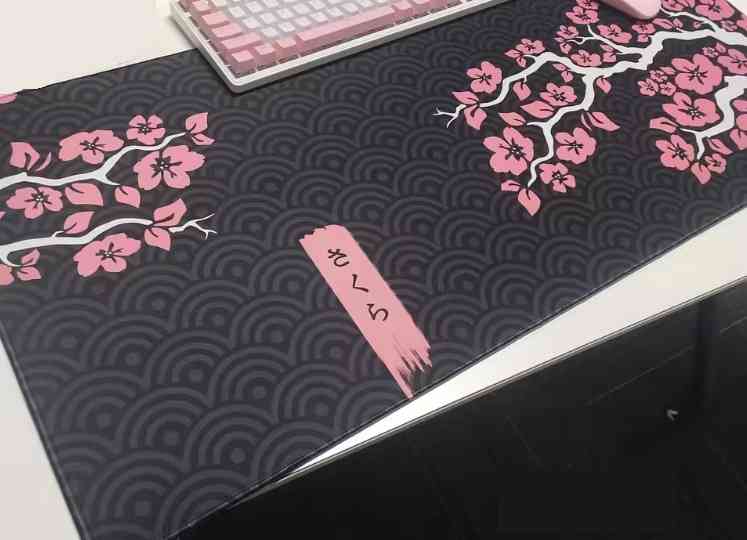 マウスパッド 桜 サクラ ブラック 60cm×30cm キーボードマット 裏面滑り止め <新品> [94191]