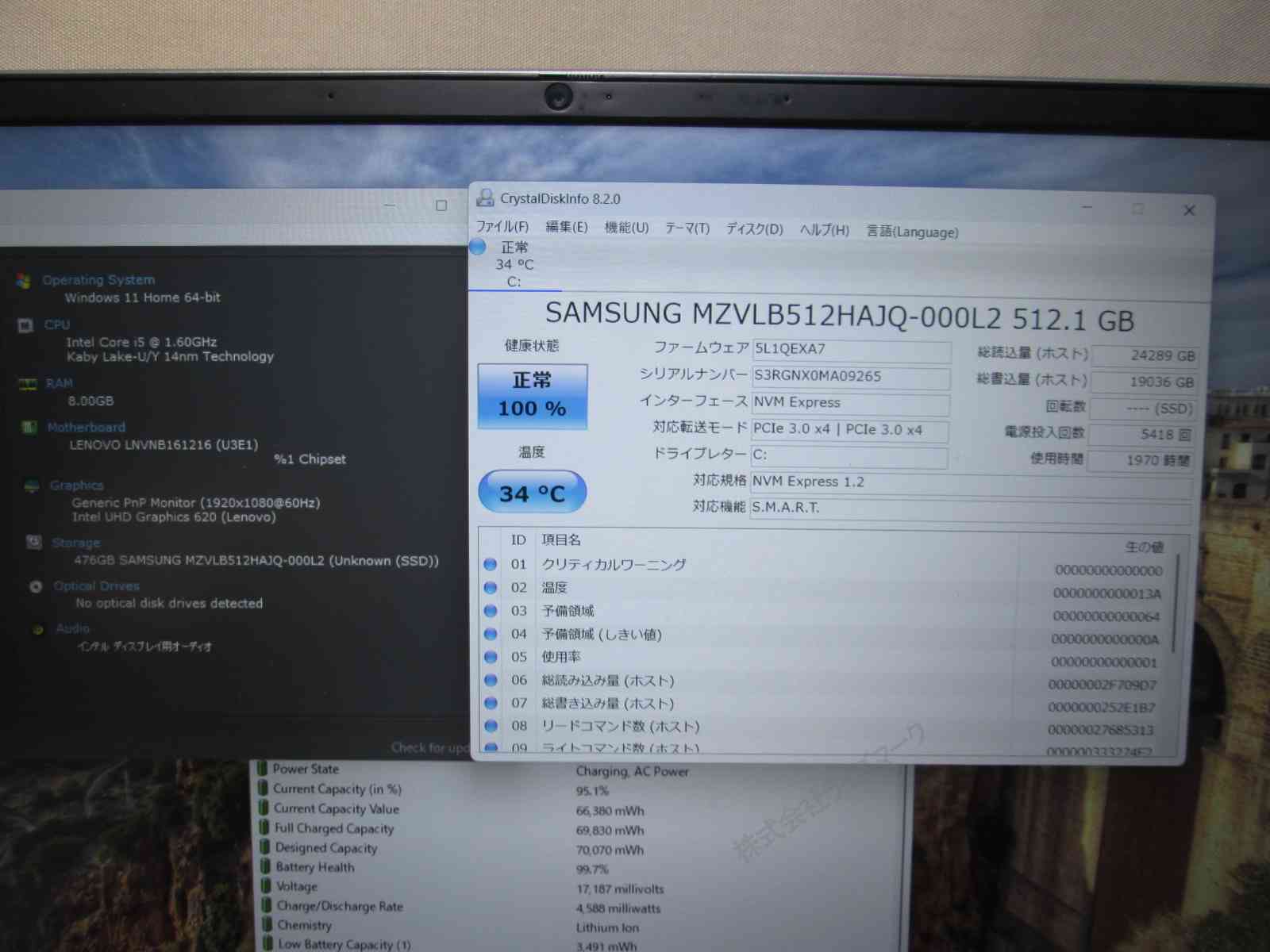 | バッテリー状態 | 新品時と比較して 99% の性能。 (BatteryInfoViewで表示された参考値であり実際の容量・充電可否は保証対象外) |