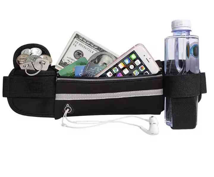 ランニングウエストポーチ ブラック ウエスト60~90cm 鍵入れ・ペットボトルホルダー付き <新品> [94225]