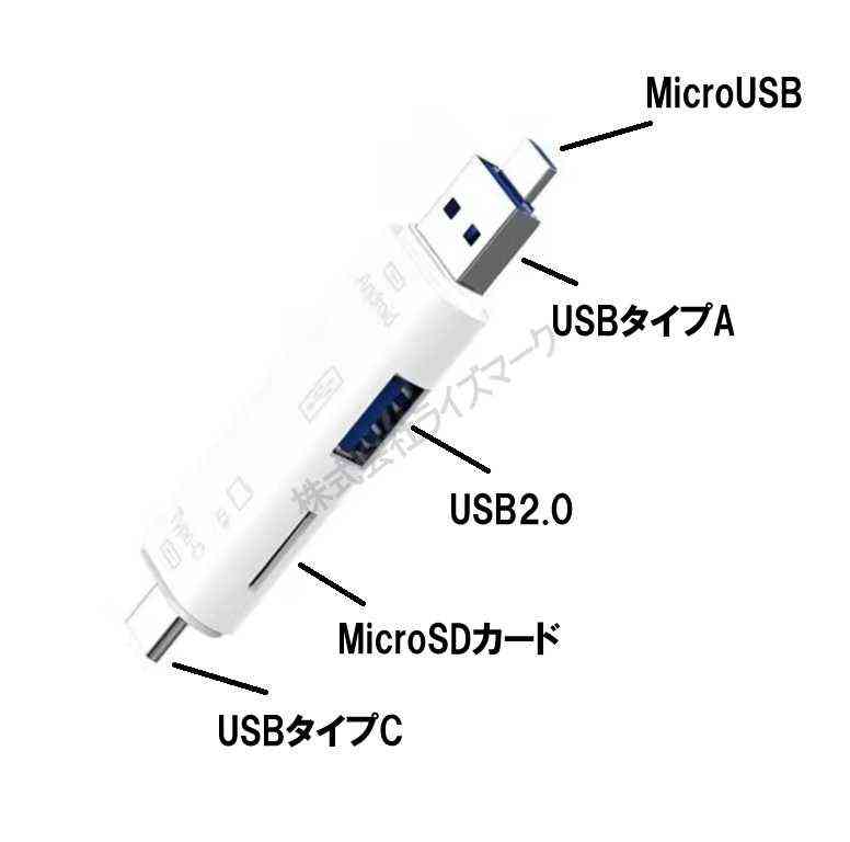 MicroSDカードリーダー USB接続 タイプA タイプC MicroUSB 3種類対応 パソコン/スマホ対応 <新品> [93966]