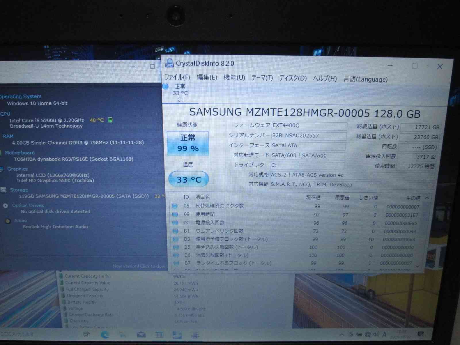 | バッテリー状態 | 新品時と比較して 50% の性能。 (BatteryInfoViewで表示された参考値であり実際の容量・充電可否は保証対象外) |