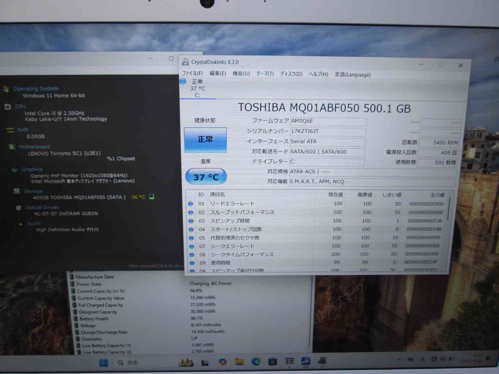 | バッテリー状態 | 新品時と比較して 90% の性能。 (BatteryInfoViewで表示された参考値であり実際の容量・充電可否は保証対象外) |