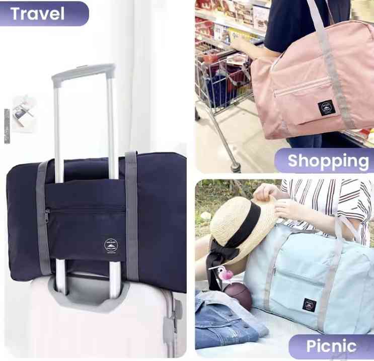 折りたたみトラベルバッグ ブルー コンパクト 軽量 スーツケースに装着可 旅行用のサブバッグ <新品> [94482]