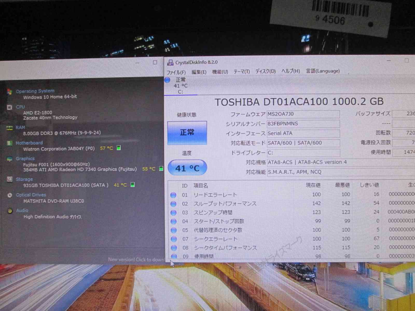 | 不具合の有無 | テレビ機能は使用できません。光学ドライブ動作しません |
