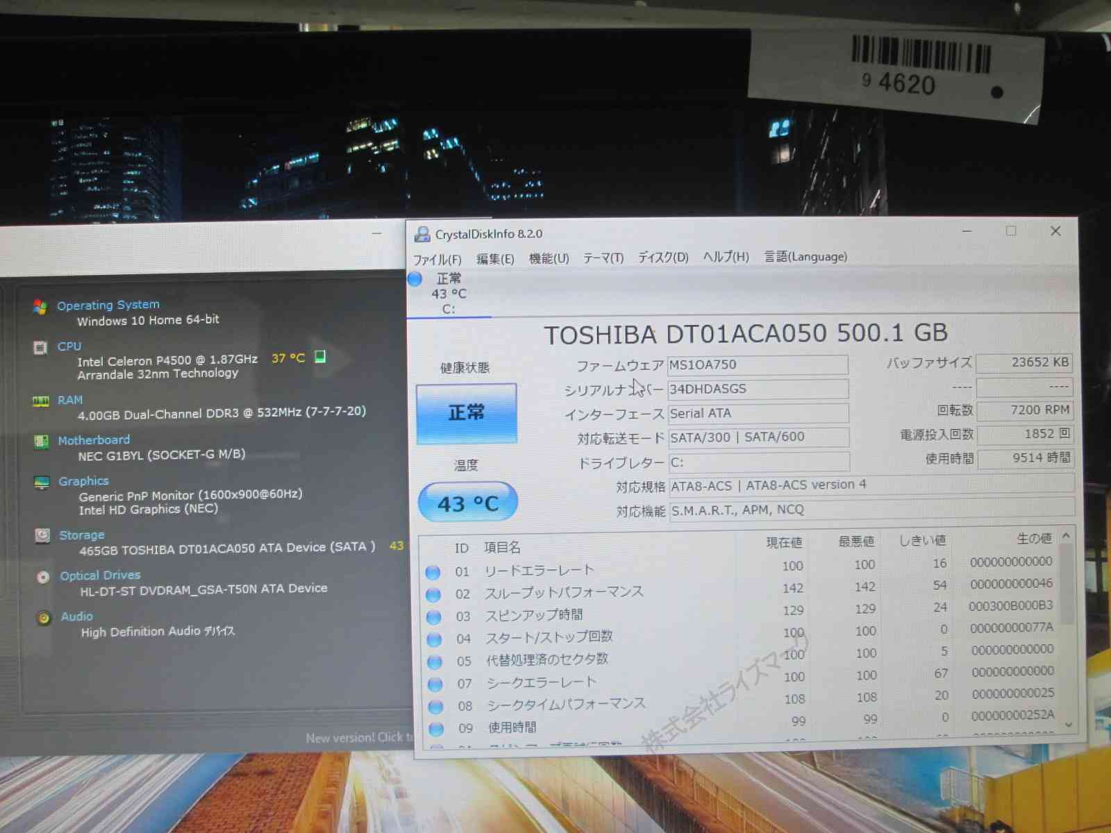 | 外観 | 傷や汚れあり。背面のネジ2個、HDDマウンタのネジ1個欠品 (写真はお送りする現物を撮影しています) |