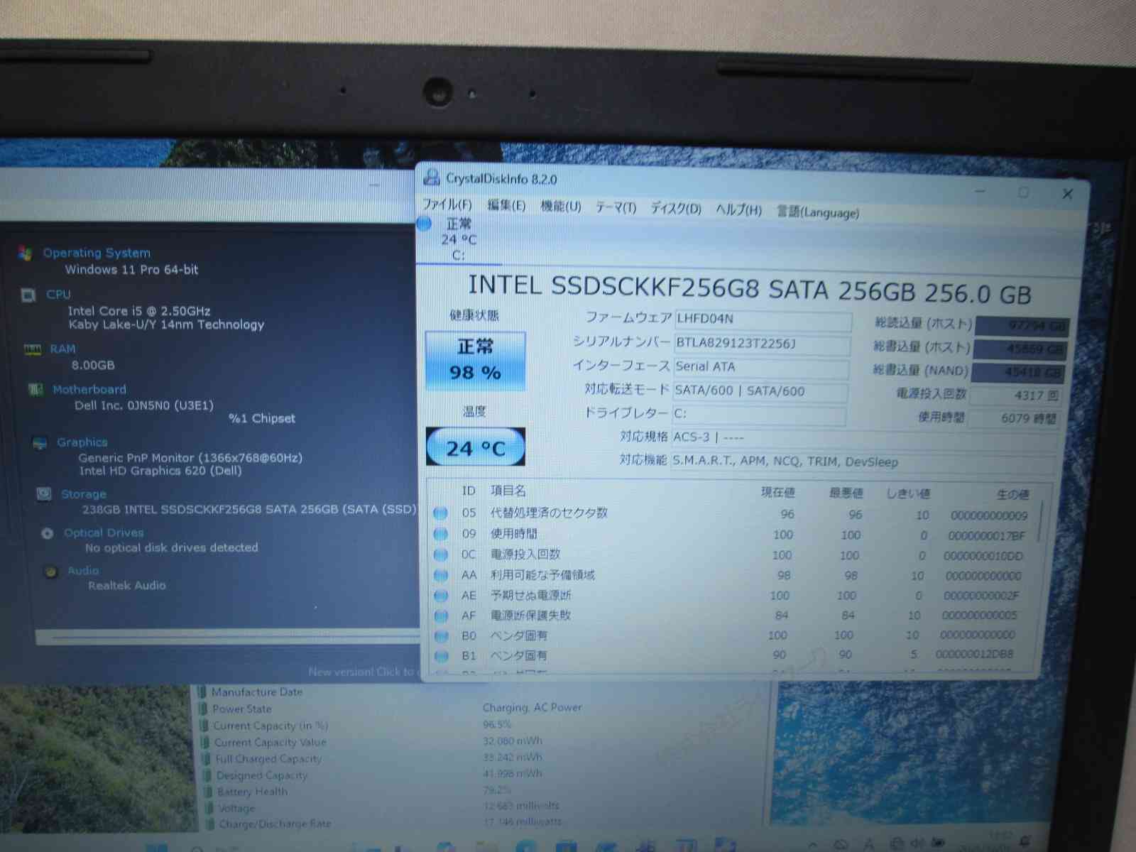 | バッテリー状態 | 新品時と比較して 79% の性能。 (BatteryInfoViewで表示された参考値であり実際の容量・充電可否は保証対象外) |