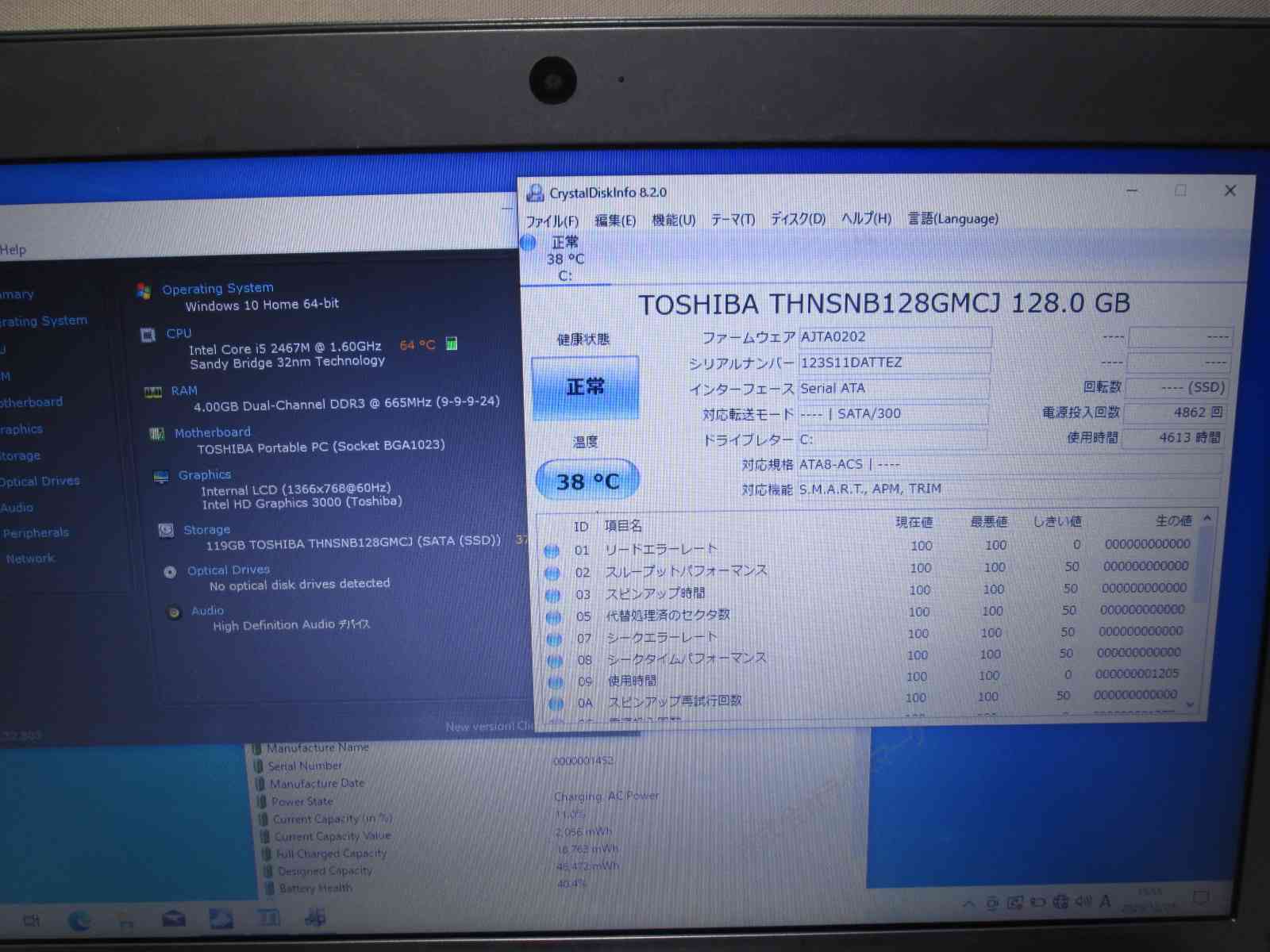 | バッテリー状態 | 新品時と比較して 40% の性能。 (BatteryInfoViewで表示された参考値であり実際の容量・充電可否は保証対象外) |