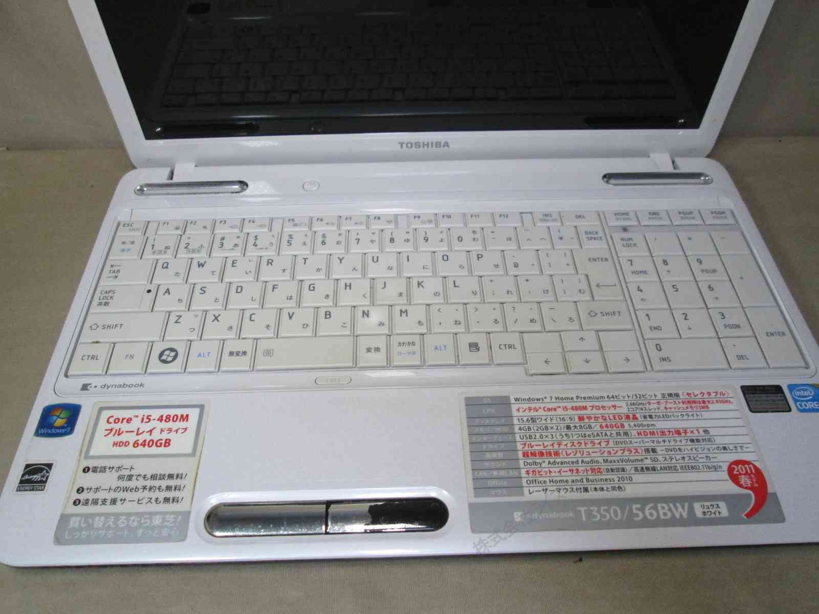 東芝 dynabook T350/56BW【SSD搭載】 Core i5 480M 【Windows10 Home】ブルーレイ/MS 365 Office Web/Wi-Fi/HDMI/長期保証 [94665]