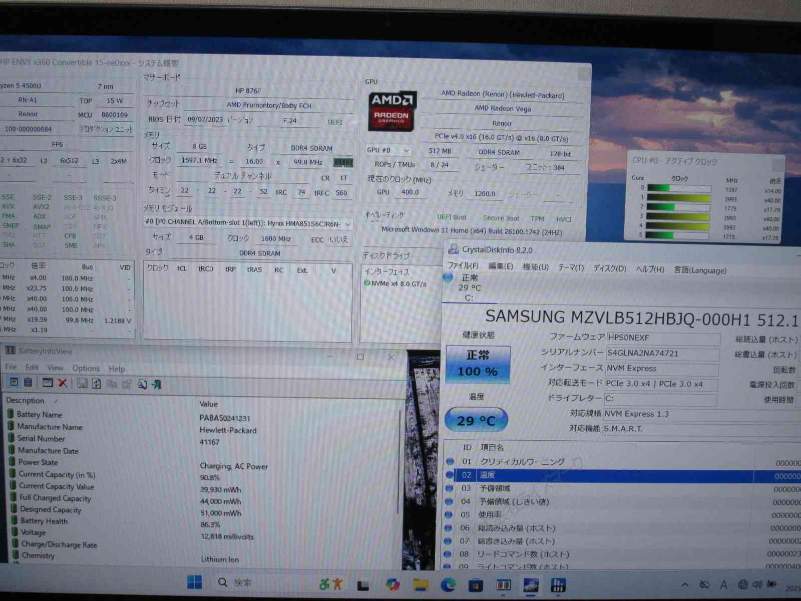 | バッテリー状態 | 新品時と比較して 82% の性能。 (BatteryInfoViewで表示された参考値であり実際の容量・充電可否は保証対象外) |