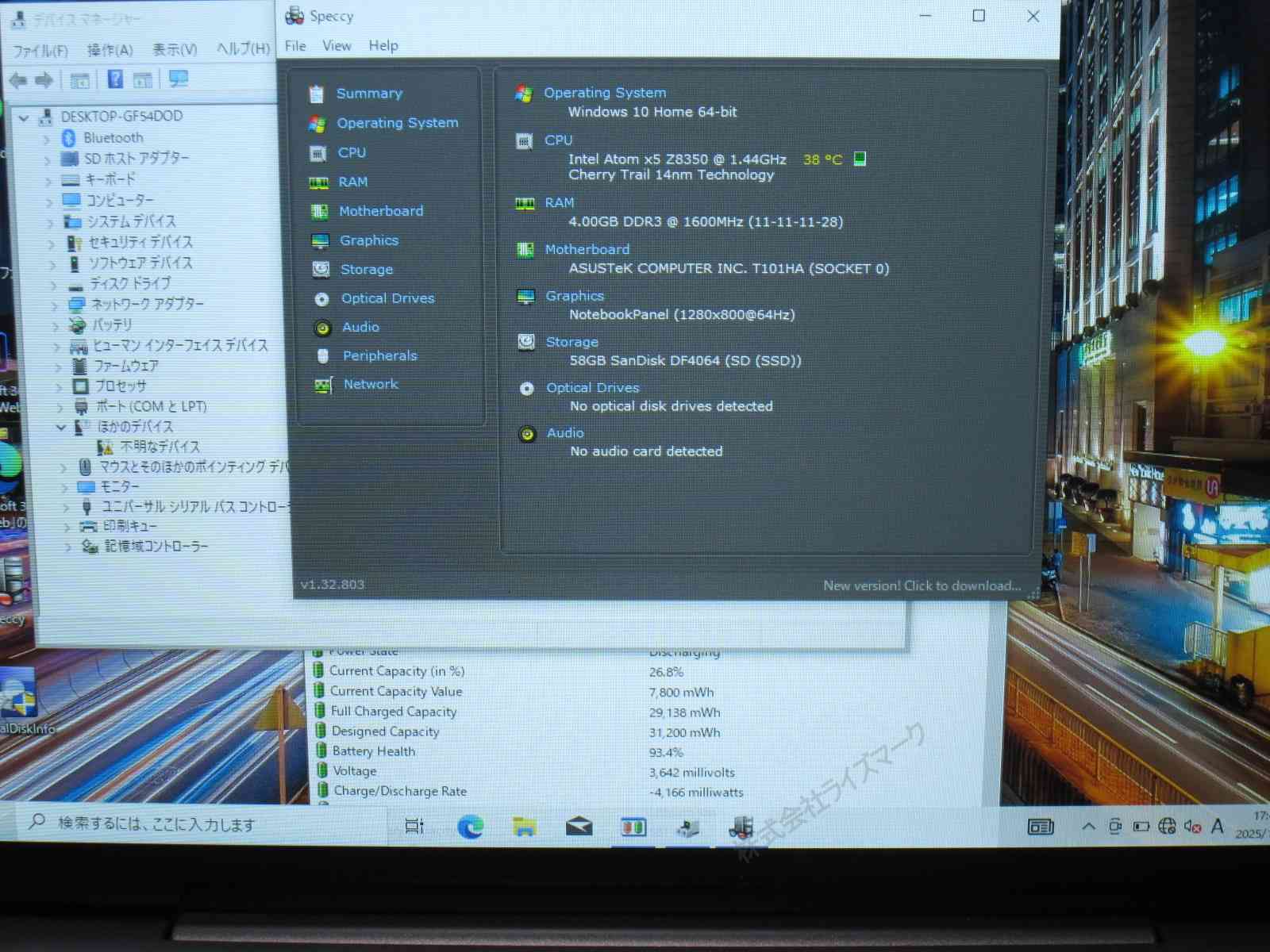| その他不具合の有無 | 音が出ません。ドライバが適用されていないデバイスが1個あります |
