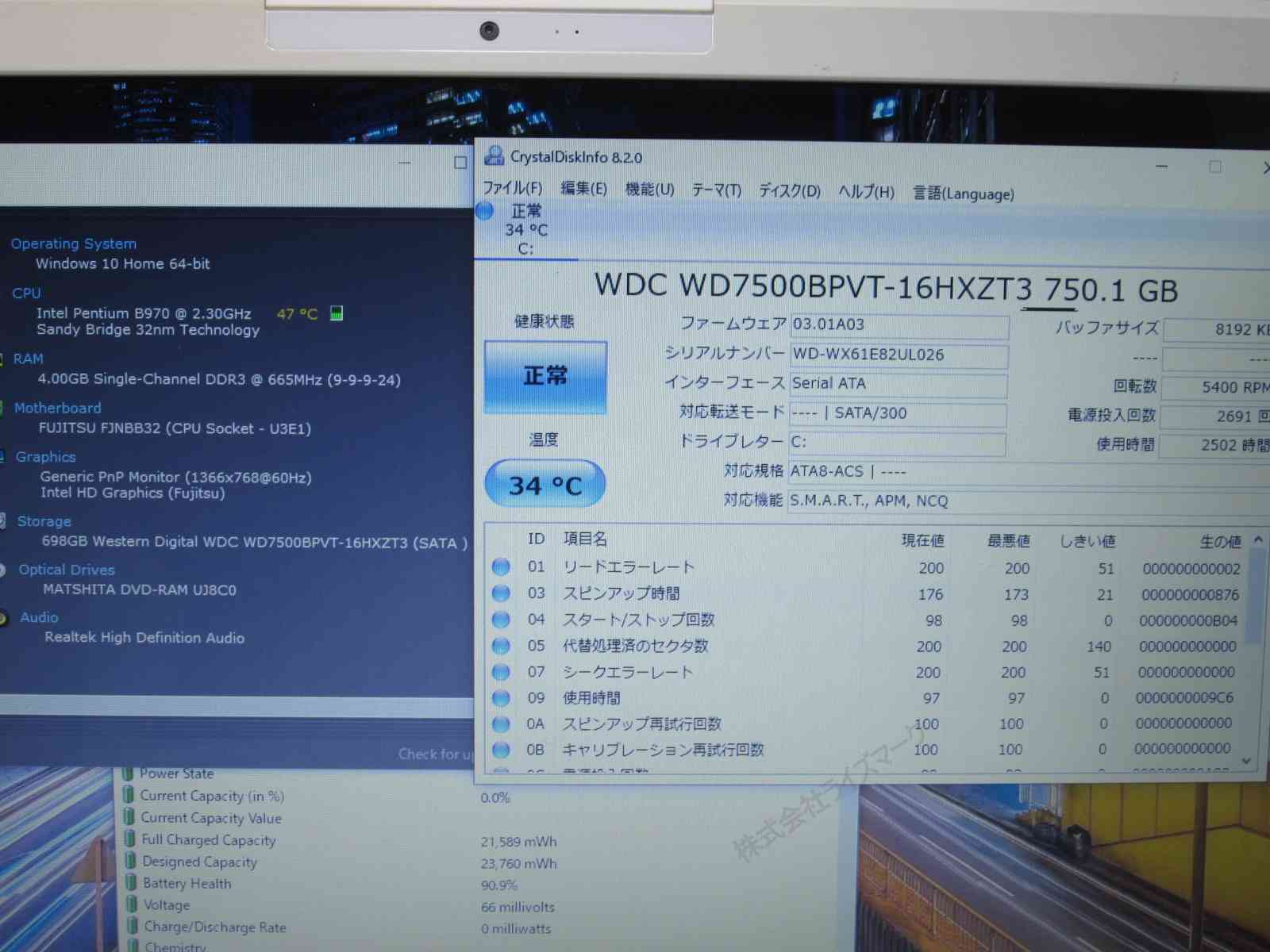 | CPU | Pentium B970 2.3GHz |