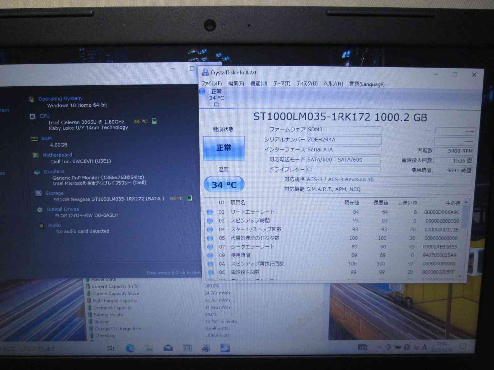 | バッテリー状態 | 新品時と比較して 59% の性能。 (BatteryInfoViewで表示された参考値であり実際の容量・充電可否は保証対象外) |
