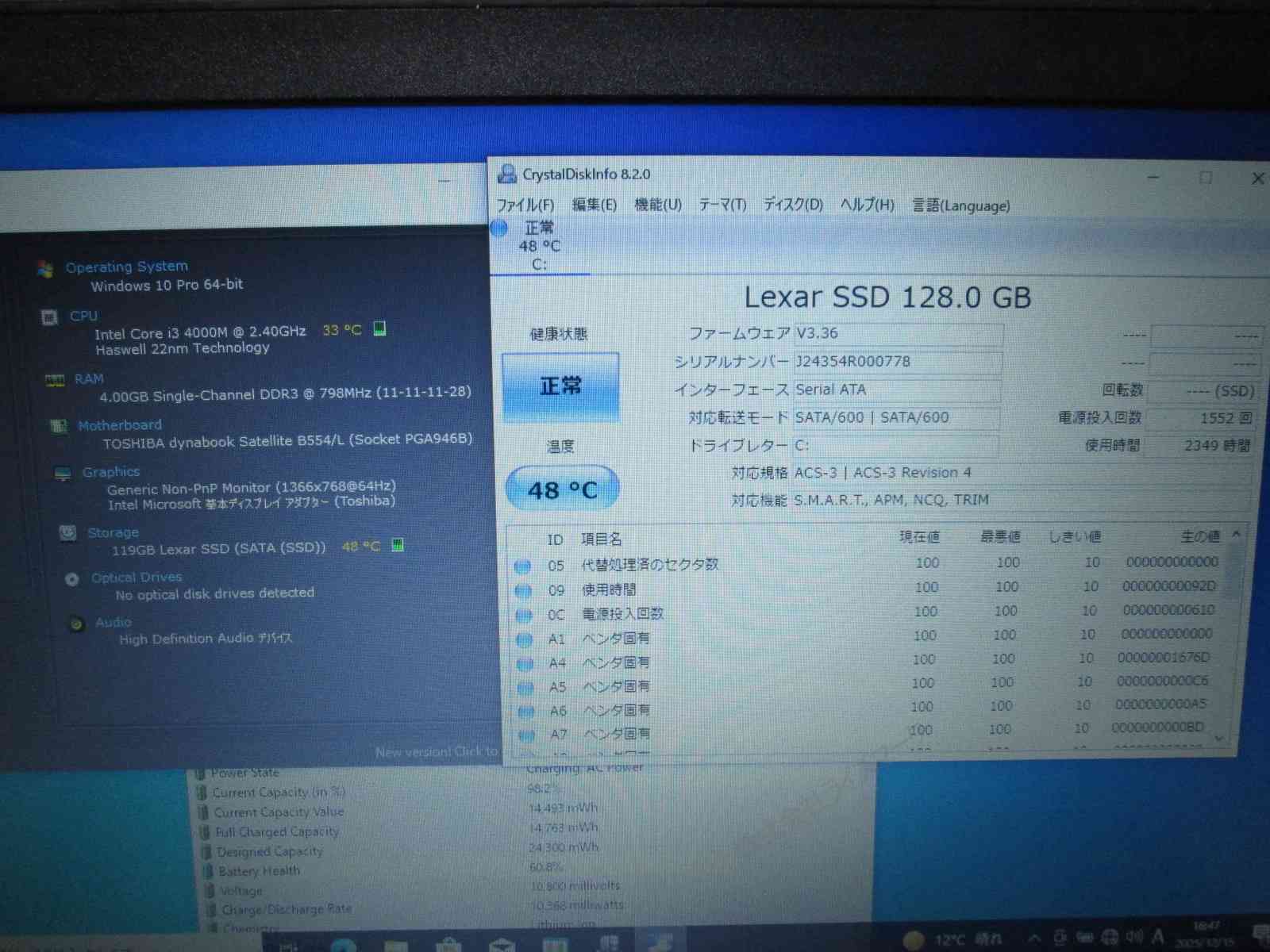 | 型番 | 東芝 dynabook Satellite B554/L、PB554LFA135AA4Z |