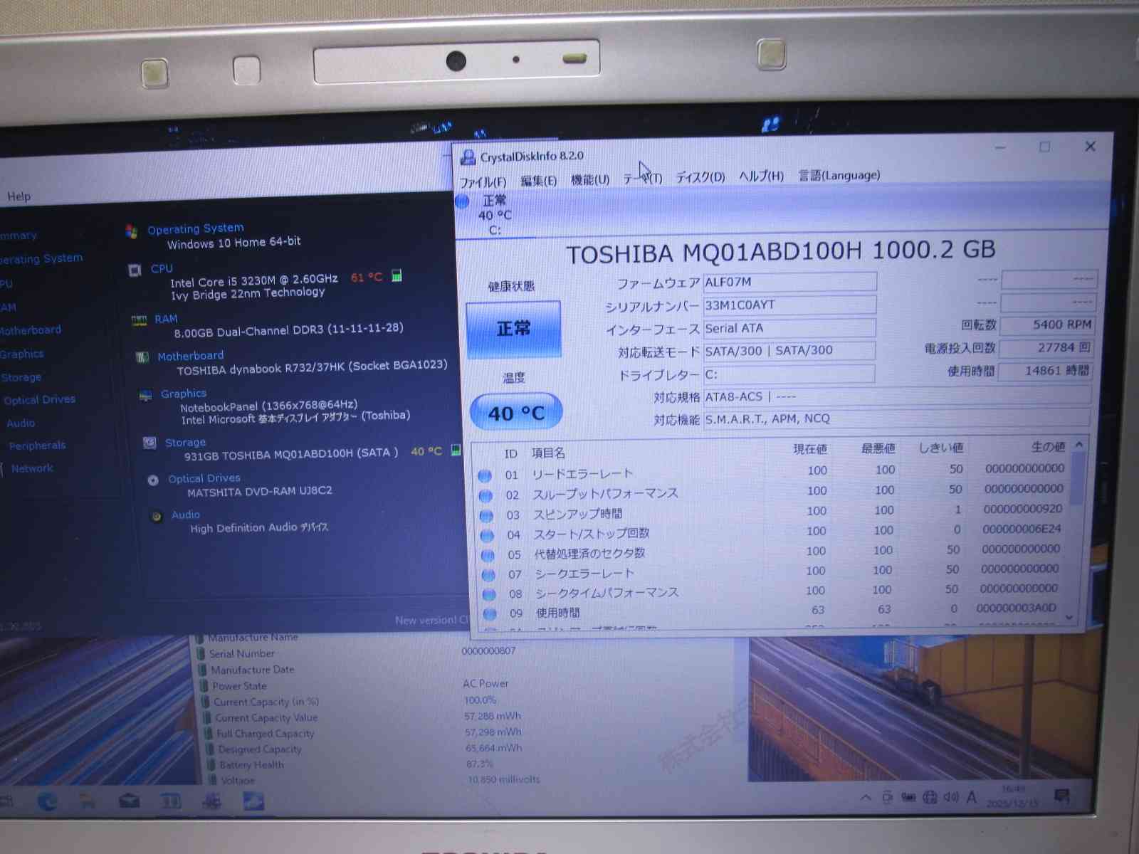 東芝 dynabook R732/37HK【大容量HDD搭載】 Core i5 3230M 【Windows10 Home】MS 365 Office Web/Wi-Fi/HDMI/長期保証 [94825]