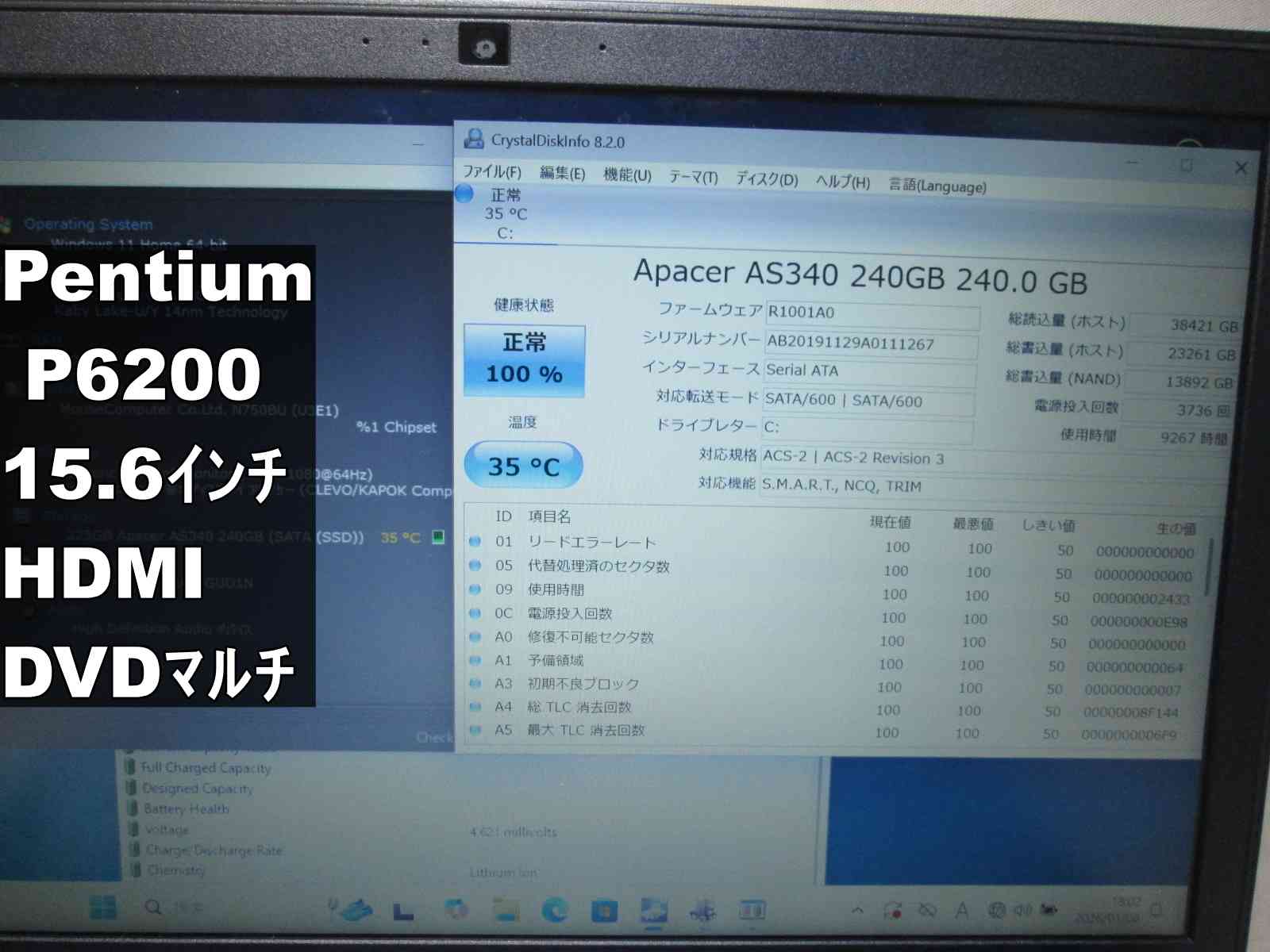 | 記憶媒体(HDD等) | 240GB(SSD) |