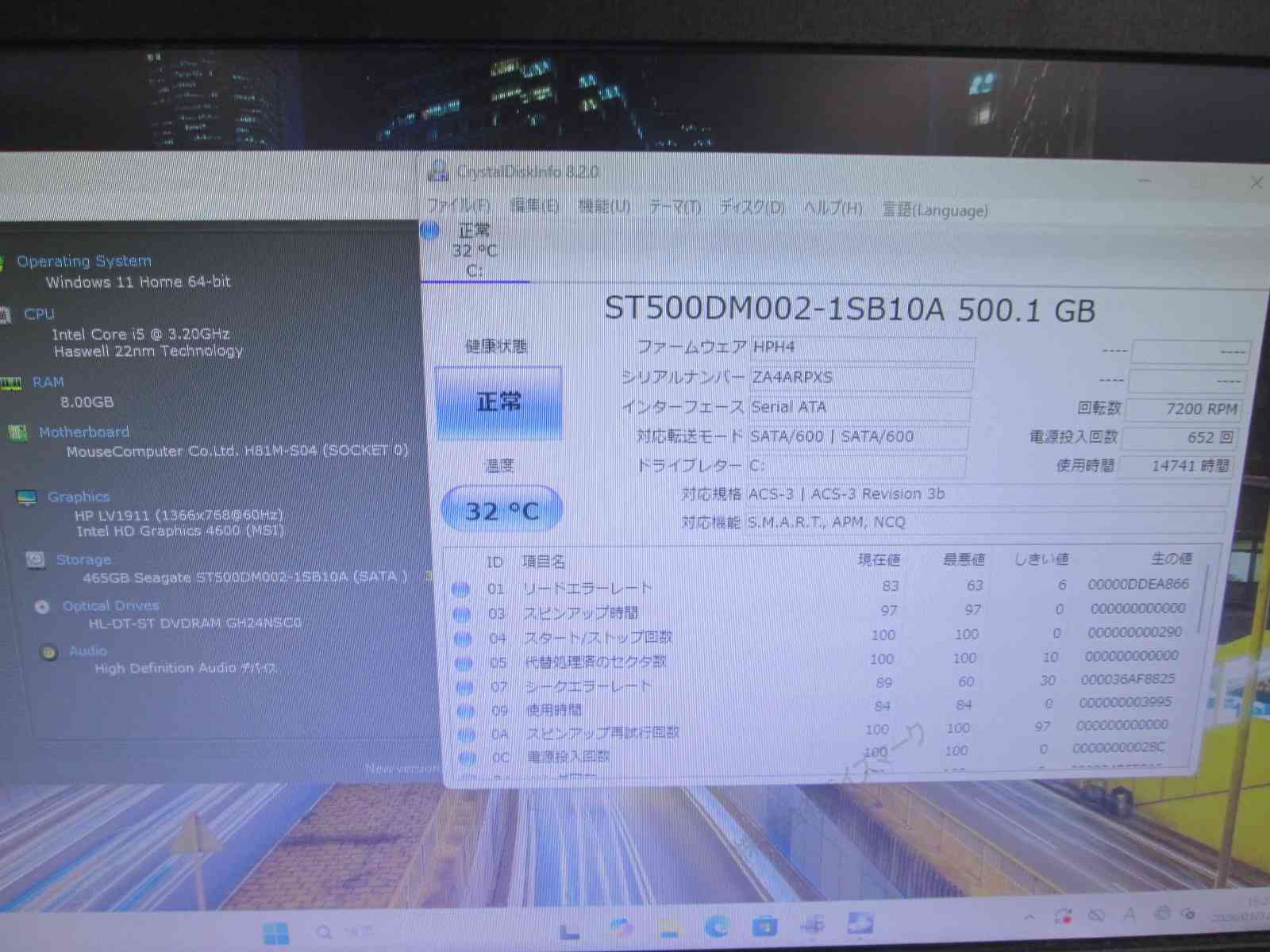 | OS | Windows11 Home 64ビットOS |