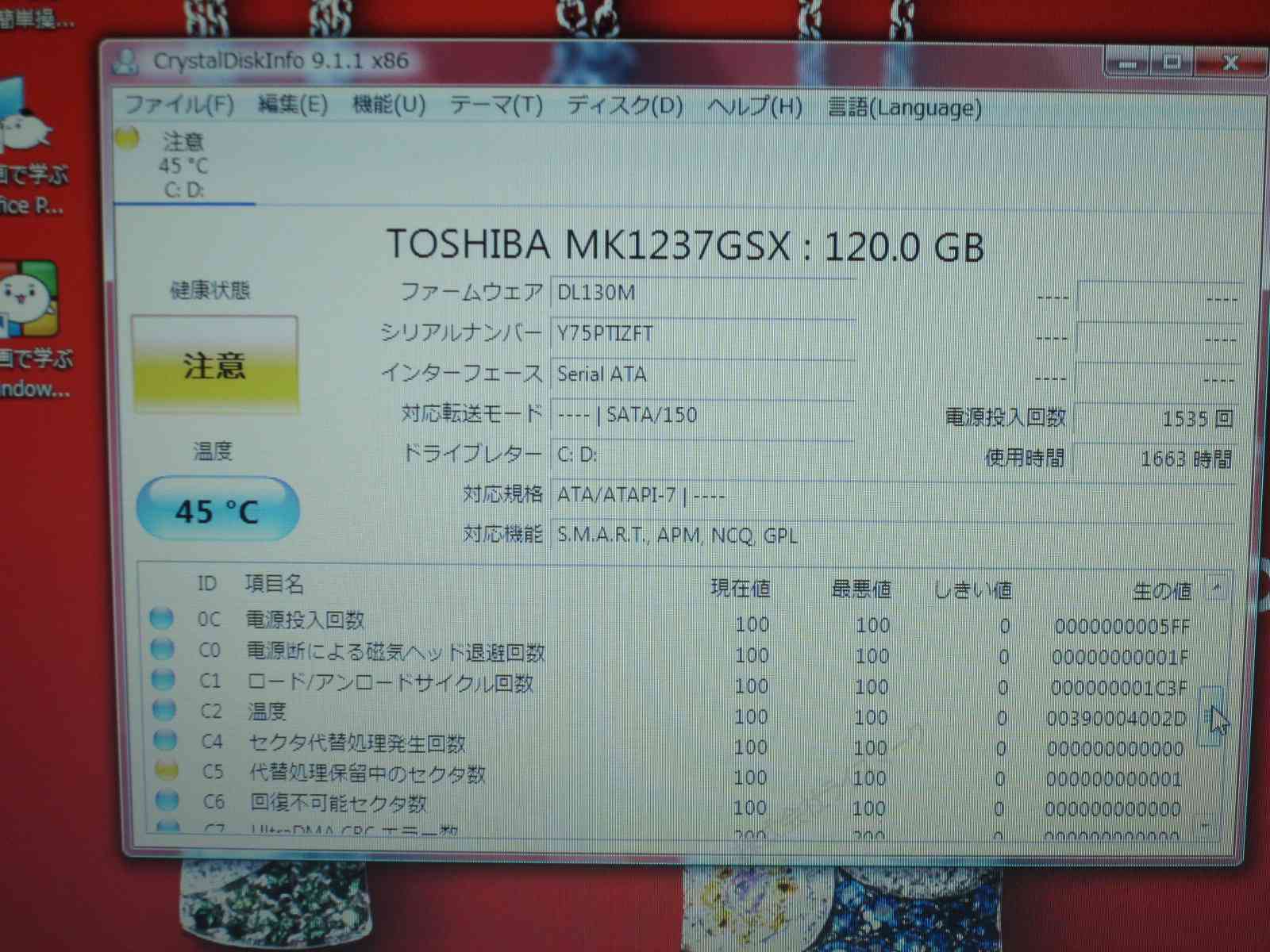 | その他不具合の有無 | ●HDDに不良セクタあり(このまま使用し続けることはできません、HDD不良に起因する不具合は保証対象外です) |