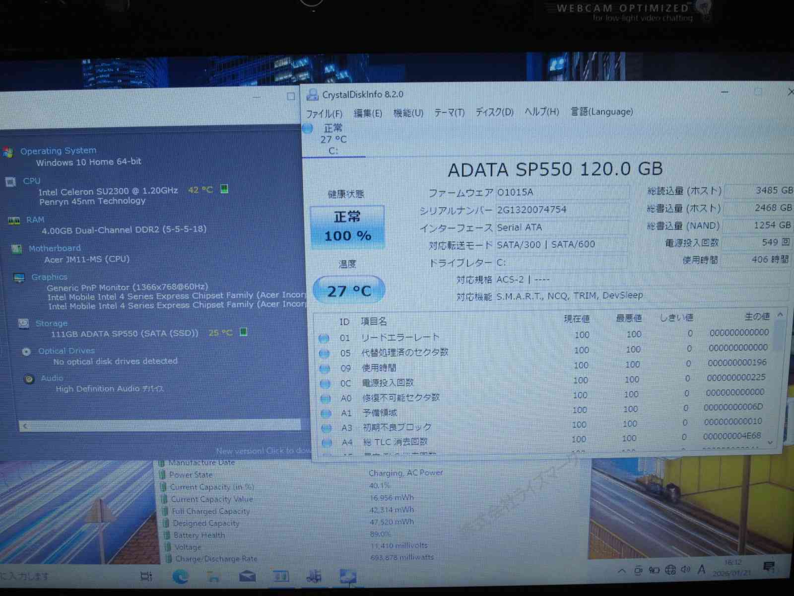 | バッテリー状態 | 新品時と比較して 89% の性能。 (BatteryInfoViewで表示された参考値であり実際の容量・充電可否は保証対象外) |