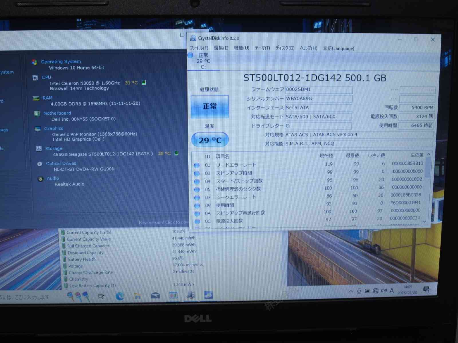 | バッテリー状態 | 新品時と比較して 95% の性能。 (BatteryInfoViewで表示された参考値であり実際の容量・充電可否は保証対象外) |