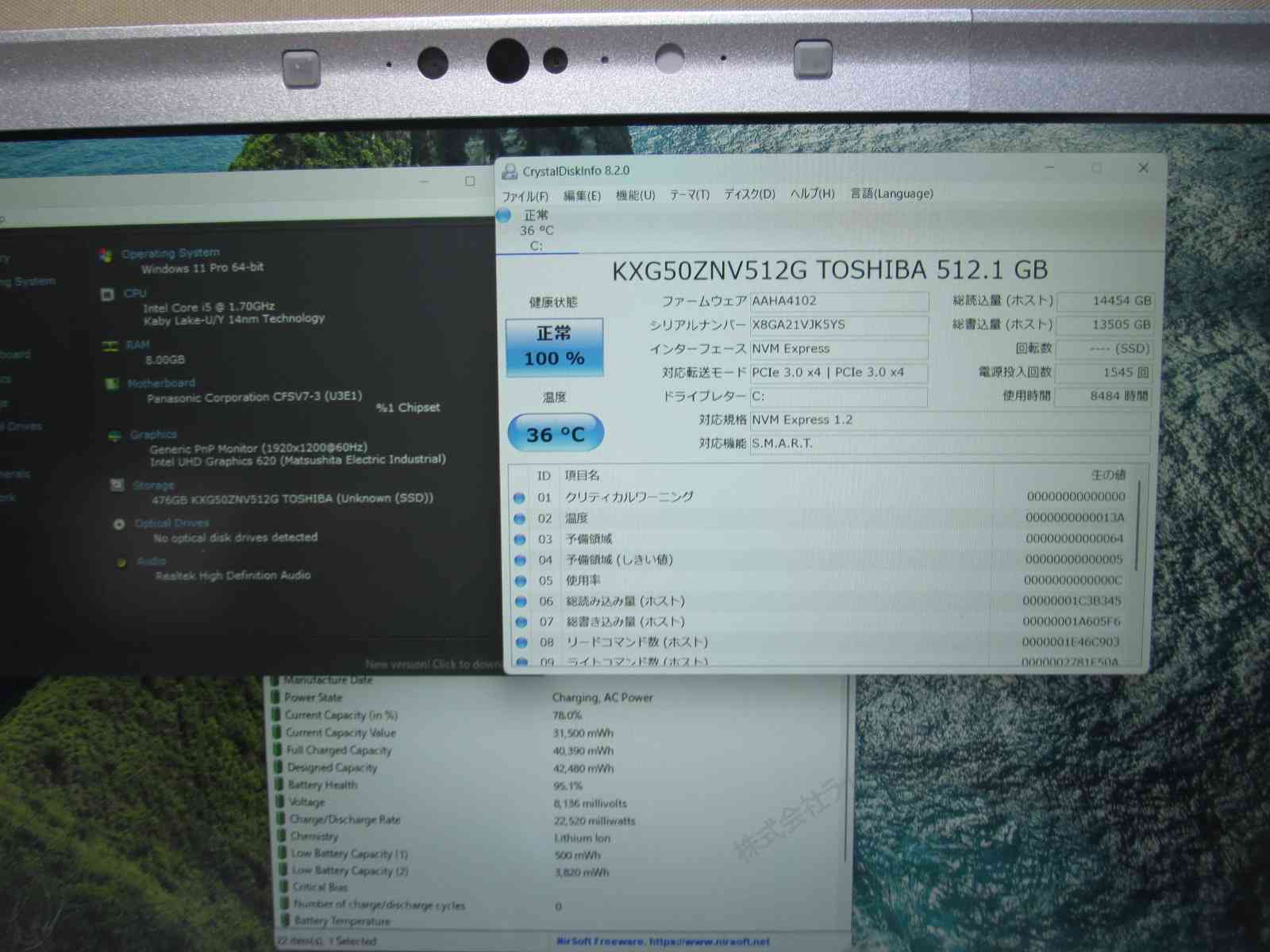| バッテリー状態 | 新品時と比較して 95% の性能。 (BatteryInfoViewで表示された参考値であり実際の容量・充電可否は保証対象外) |
