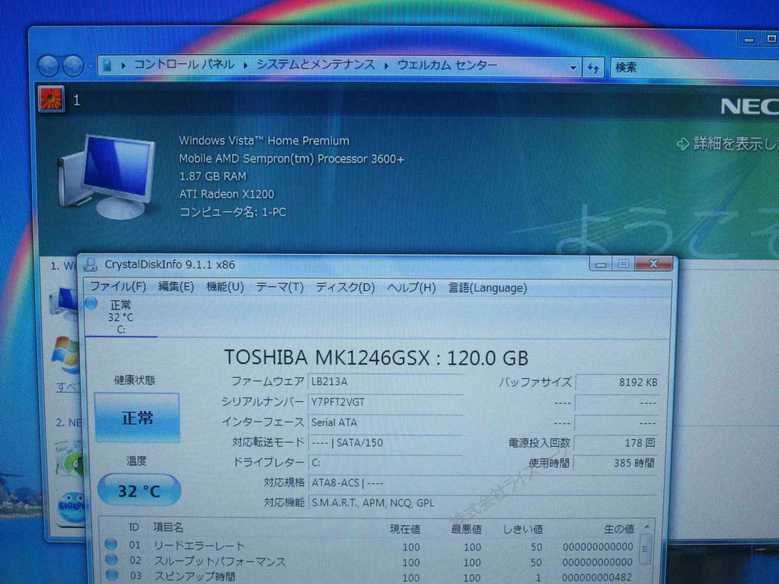 WindowsVista Home Premium インストール済み!