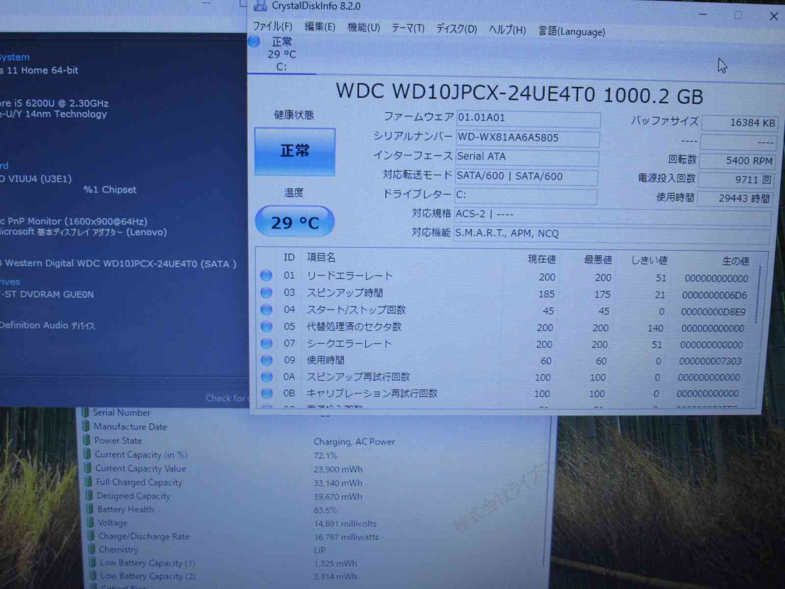 | バッテリー状態 | 新品時と比較して 83% の性能。 (BatteryInfoViewで表示された参考値であり実際の容量・充電可否は保証対象外) |