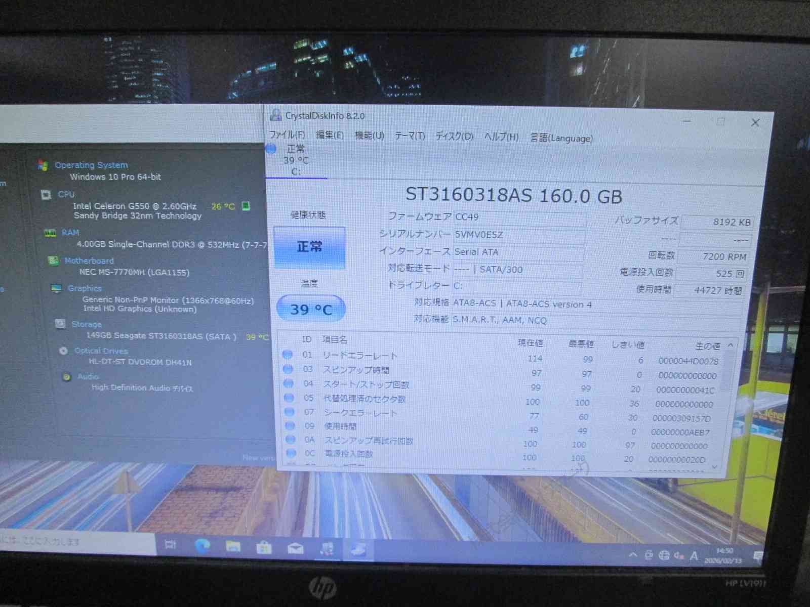 | 記憶媒体(HDD等) | 160GB |