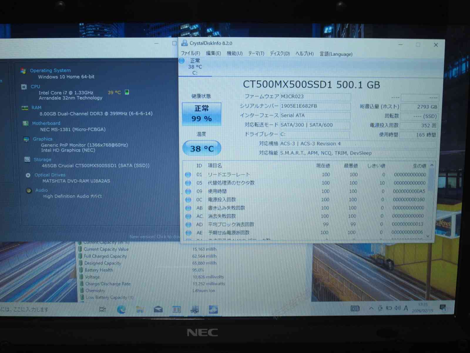 | OS | Windows10 Home 64ビットOS |