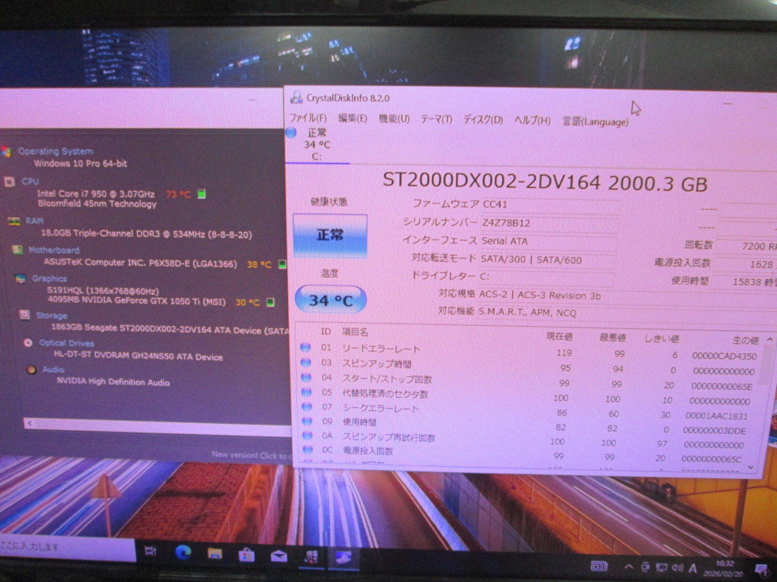 | その他機能 | マザーボード:ASUS P6X58D-E、グラフィックボード:GTX1050Ti |