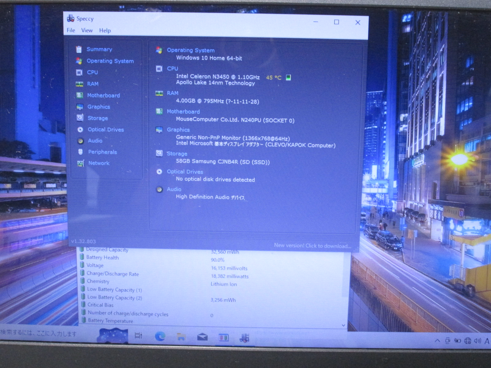 | CPU | Celeron N3450 1.1GHz |