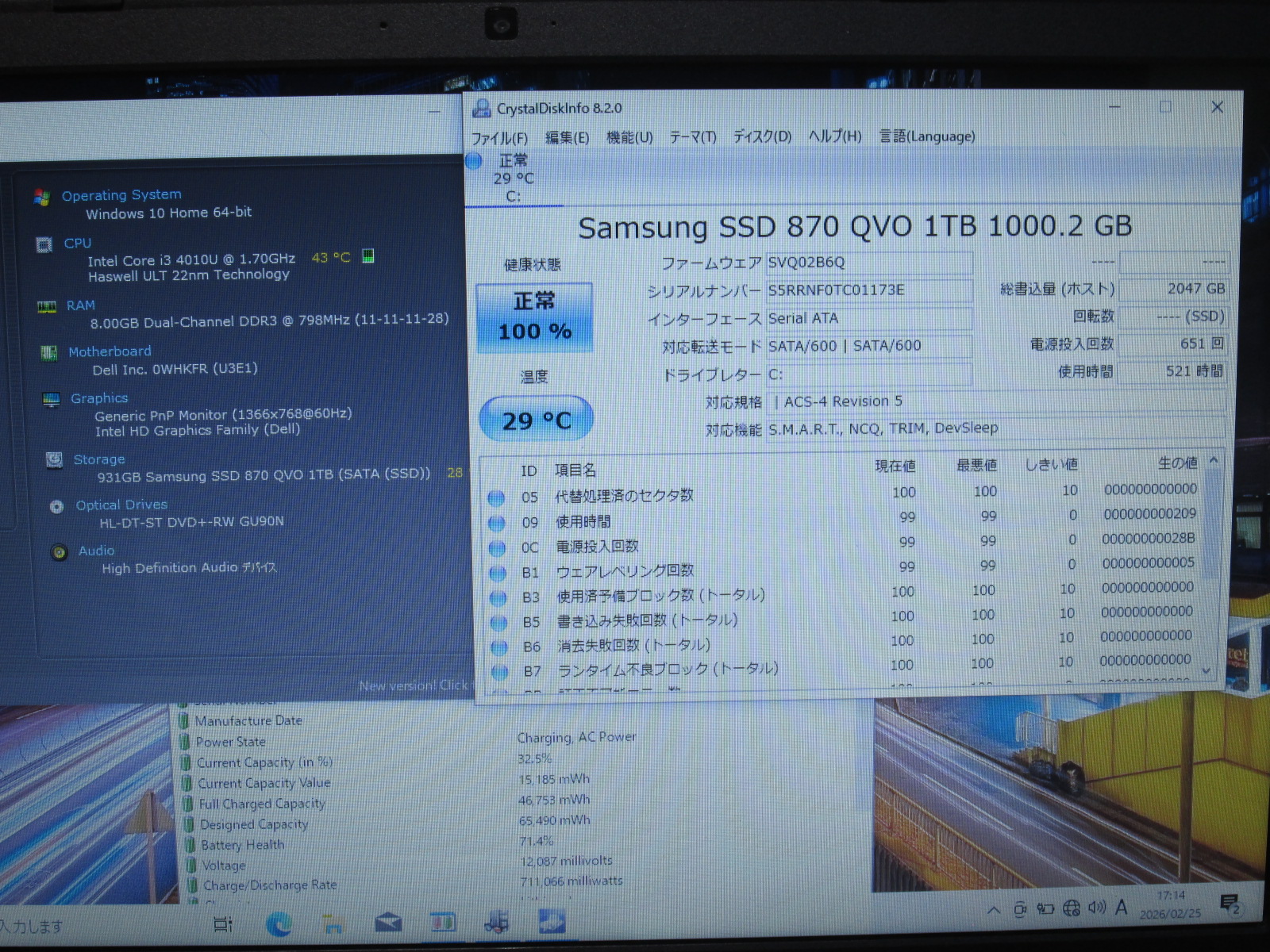 | バッテリー状態 | 新品時と比較して 71% の性能。 (BatteryInfoViewで表示された参考値であり実際の容量・充電可否は保証対象外) |