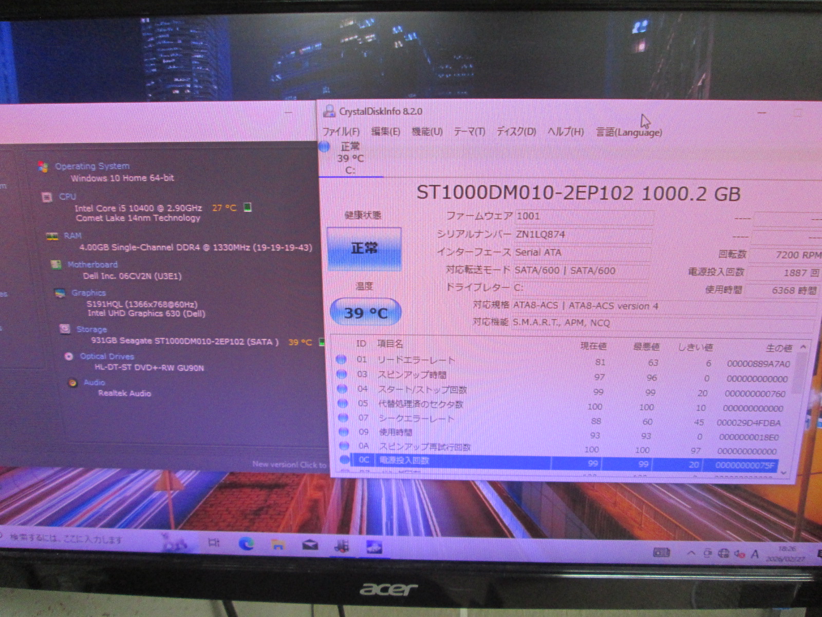 | OS | Windows10 Home 64ビットOS |