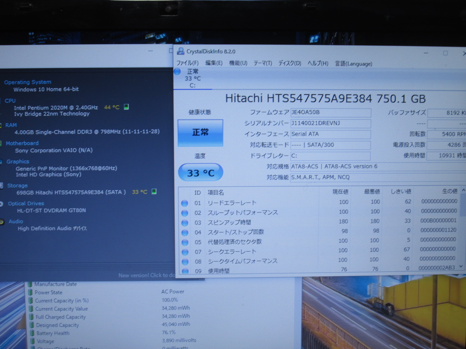 | バッテリー状態 | 新品時と比較して 76% の性能。 (BatteryInfoViewで表示された参考値であり実際の容量・充電可否は保証対象外) |