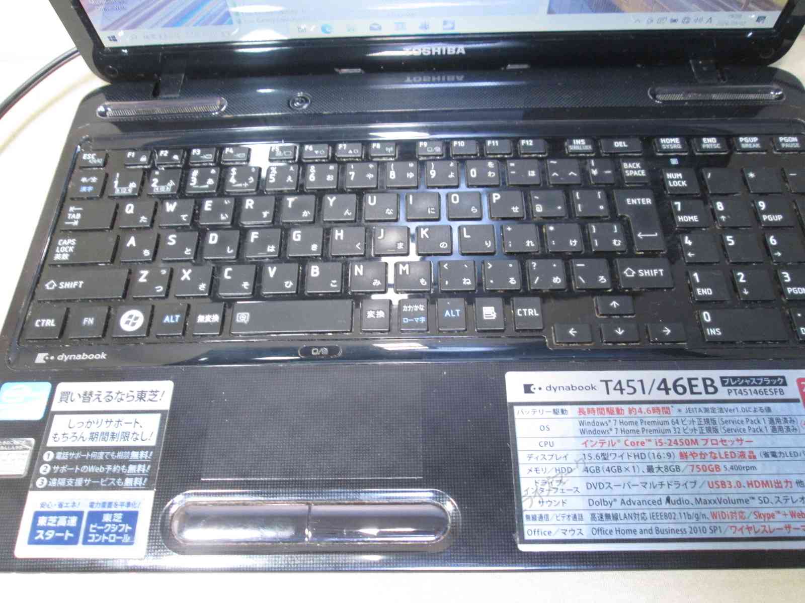 東芝 dynabook T451/46EB【Core i5 2450M】 【Windows10 Home】MS 365 Office Web/充電可/Wi-Fi/HDMI [95661]