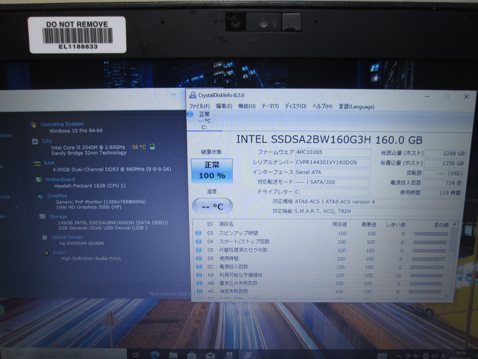 | 型番 | HP EliteBook 2560p |