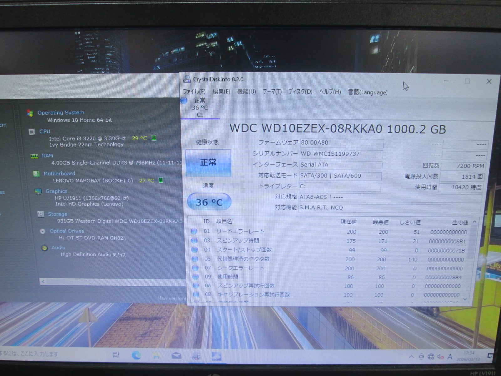 | OS | Windows10 Home 64ビットOS |