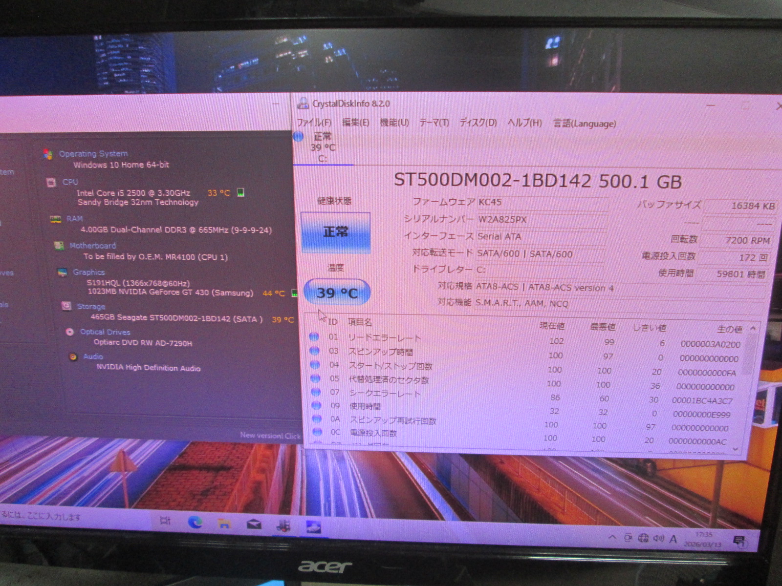 | 記憶媒体(HDD等) | 500GB |