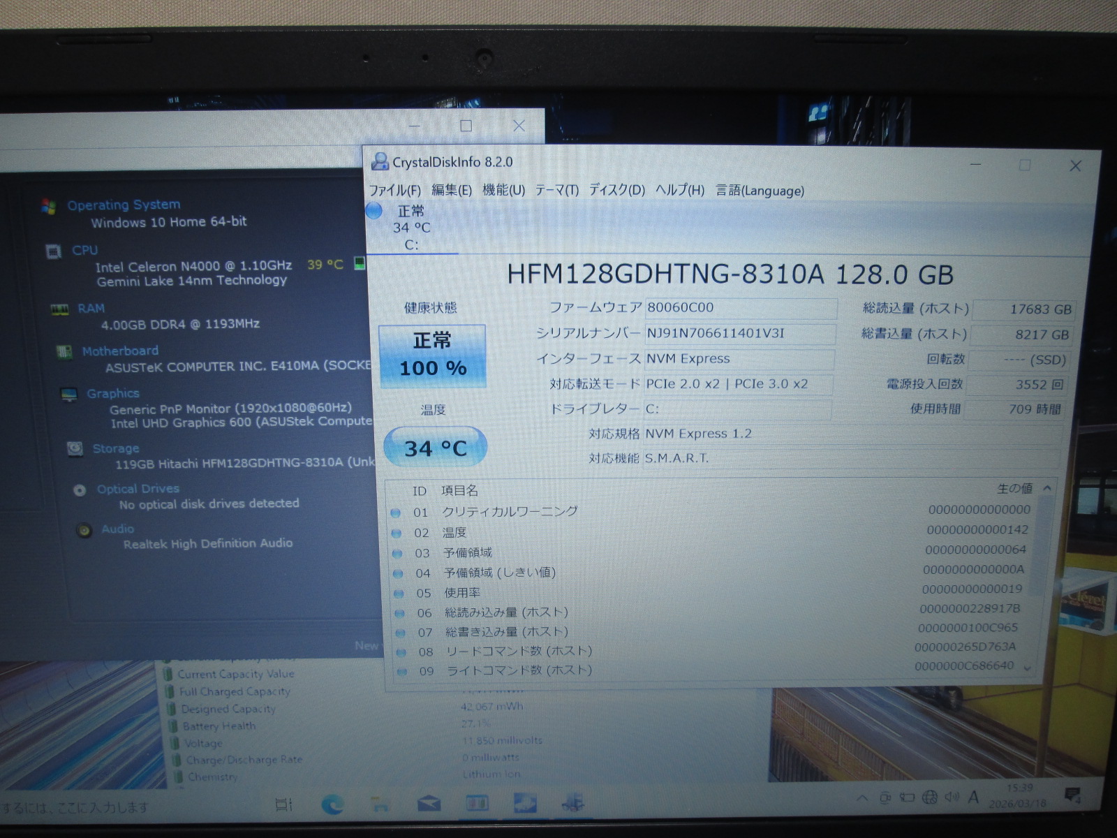 | CPU | Celeron N4020 1.1GHz |