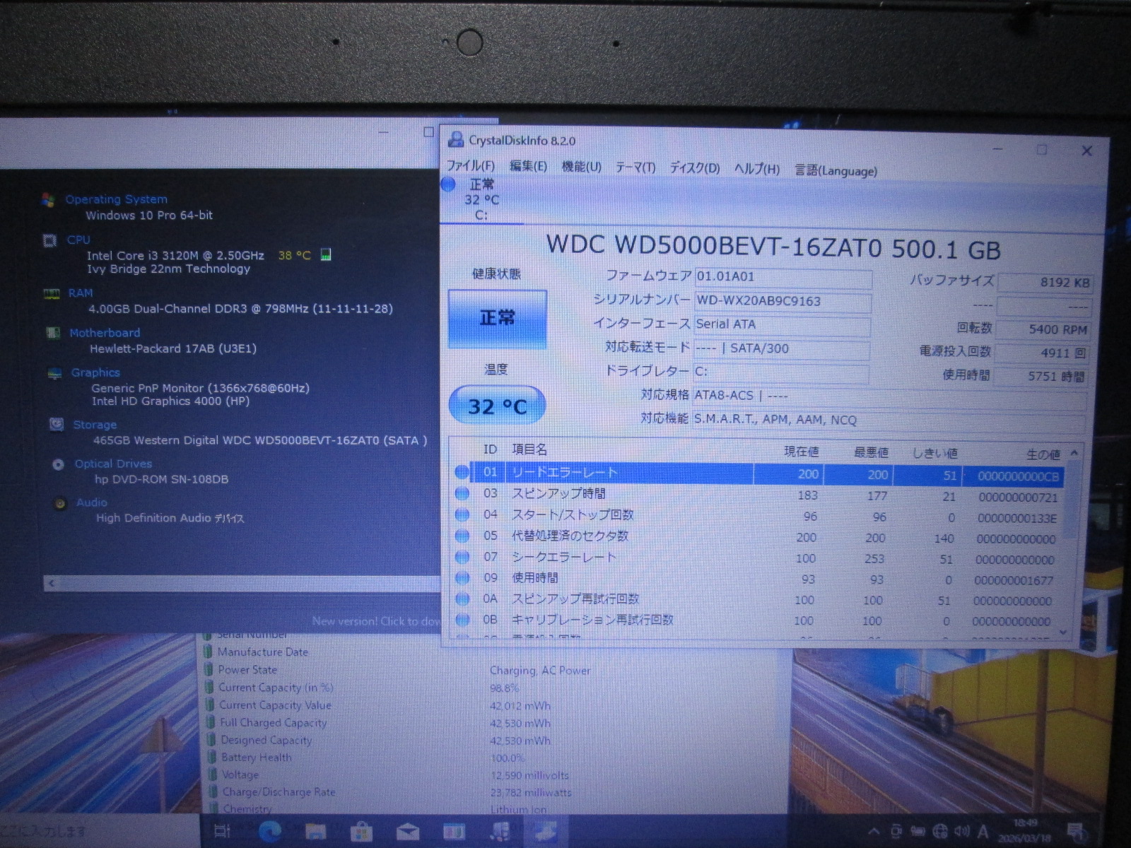 | CPU | Core i3 3120M 2.5GHz |