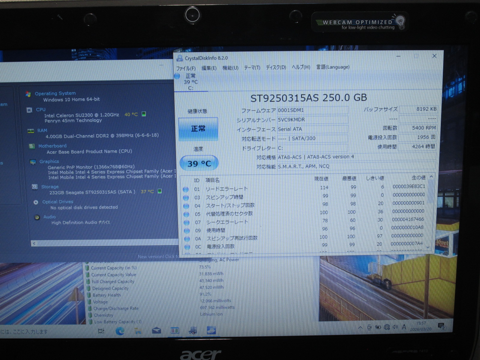 | 型番 | Acer Aspire 1410-Bb22 |