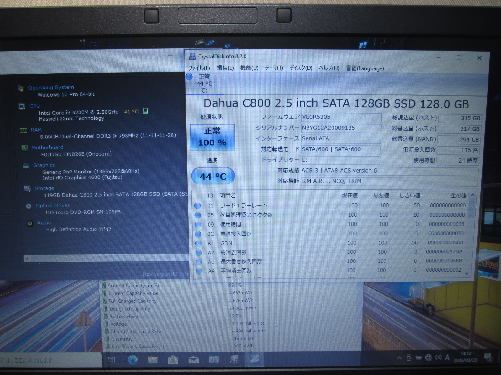 | バッテリー状態 | 新品時と比較して 19% の性能。 (BatteryInfoViewで表示された参考値であり実際の容量・充電可否は保証対象外) |