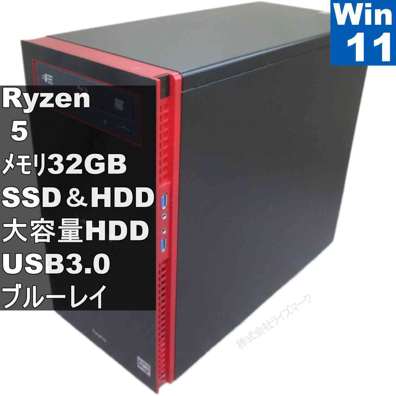 iiyama ILeDXs-M0B5-AR56X-RBSXB【SSD&HDD搭載】 AMD Ryzen 5 32GBメモリ 【Windows11 Home】 タワー型/グラボ搭載/長期保証 [96043]