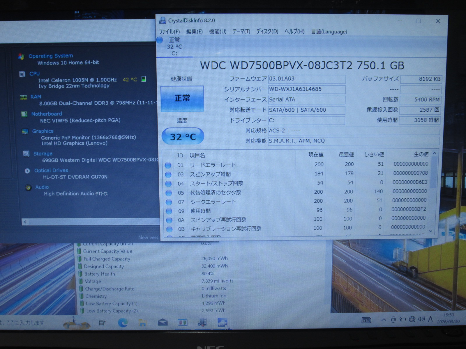 | 型番 | NEC LaVie S LS150/N、PC-LS150NSW-KS |
