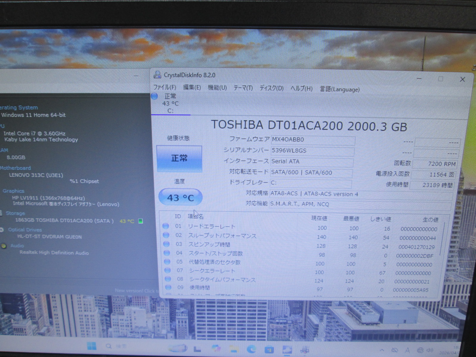 | OS | Windows11 Home 64ビットOS |