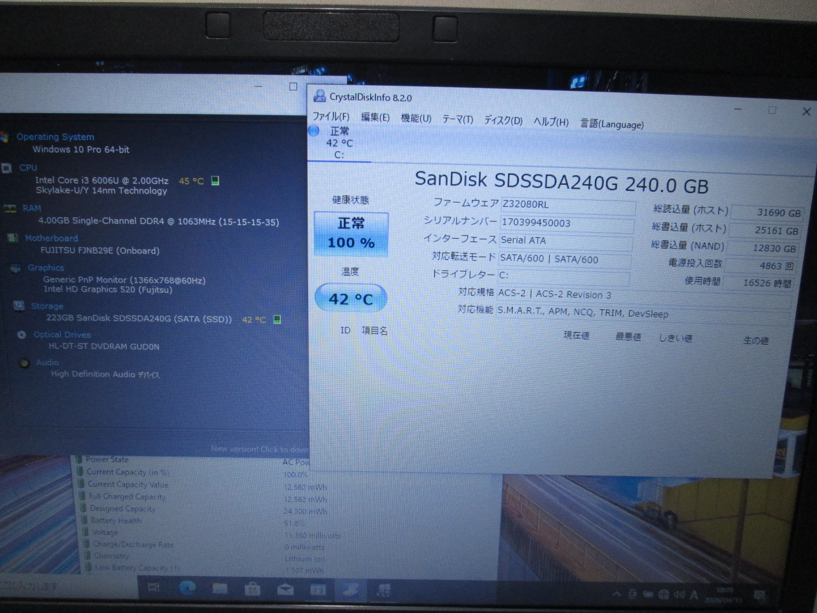 | バッテリー状態 | 新品時と比較して 51% の性能。 (BatteryInfoViewで表示された参考値であり実際の容量・充電可否は保証対象外) |
